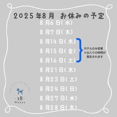 | 大型犬 5泊以上 | ¥6,000 × 泊数 |